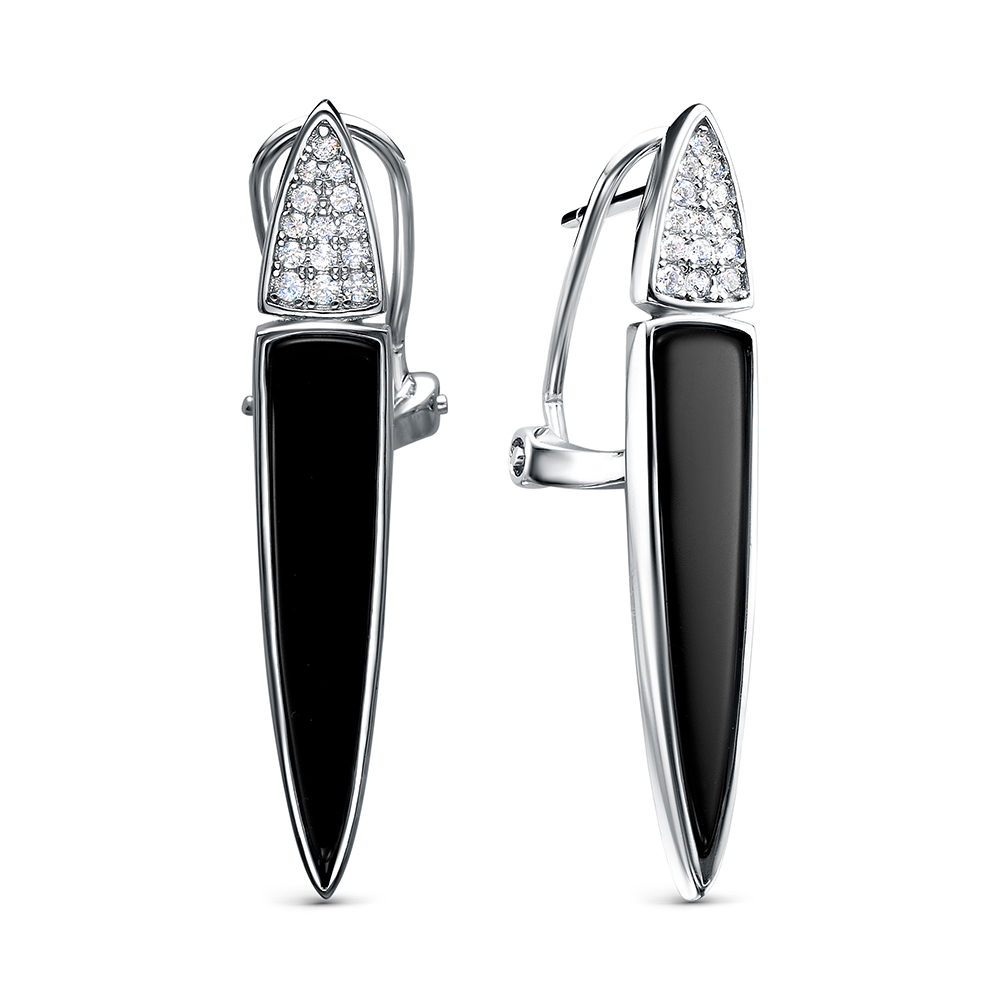 Серьги из серебра 925 пробы с фианитами и ониксом