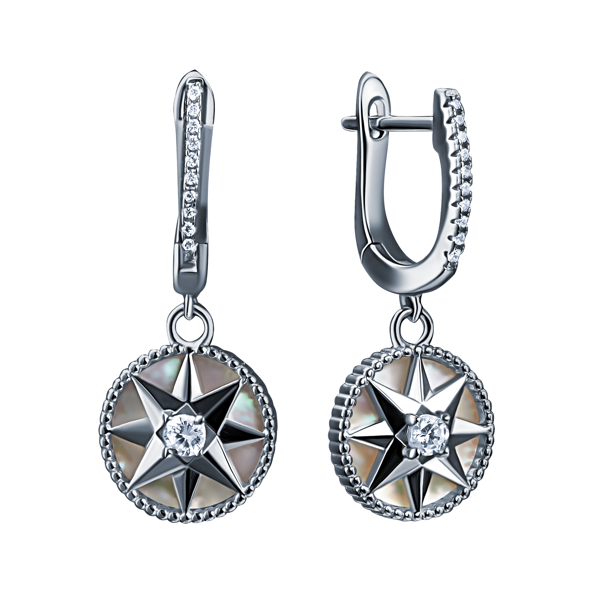 Серьги из серебра 925 пробы с фианитами и перламутром