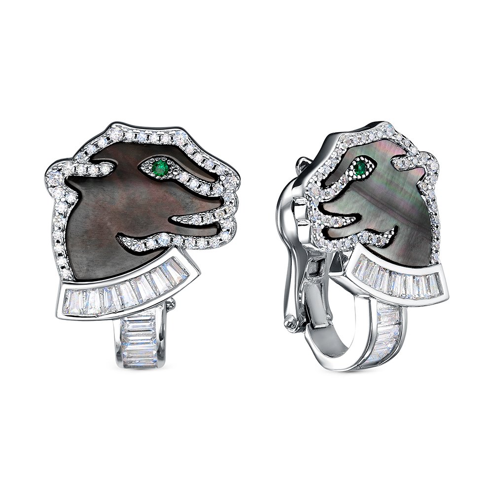 Серьги из серебра 925 пробы с фианитами и перламутром