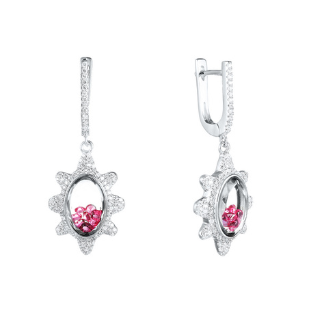 Серьги из серебра 925 пробы с фианитами и ювелирным стеклом