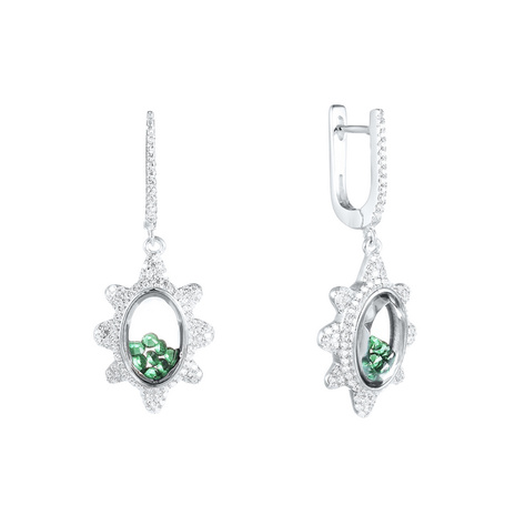 Серьги из серебра 925 пробы с фианитами и ювелирным стеклом