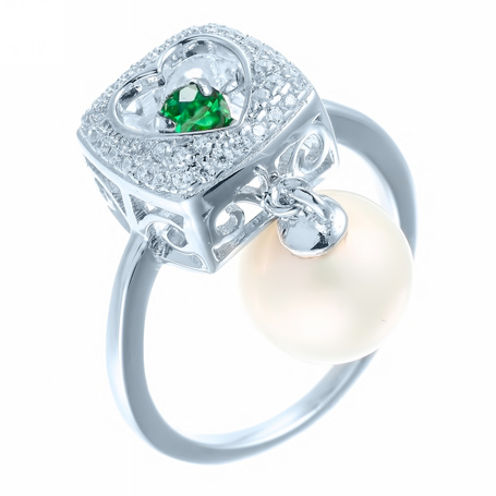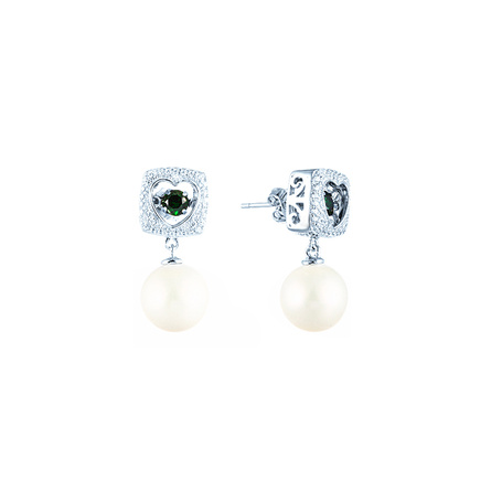 Серьги из серебра 925 пробы с фианитами и жемчугами