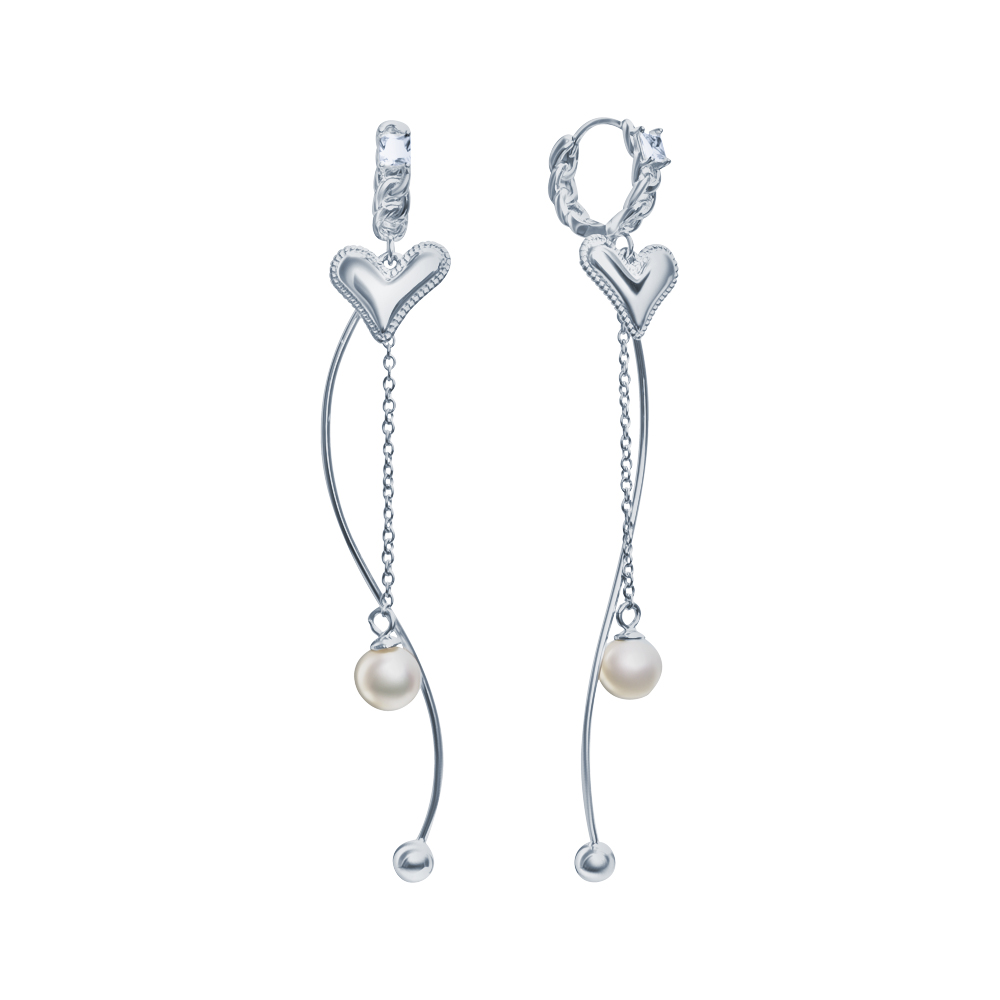 Серьги из серебра 925 пробы с фианитами и жемчугами