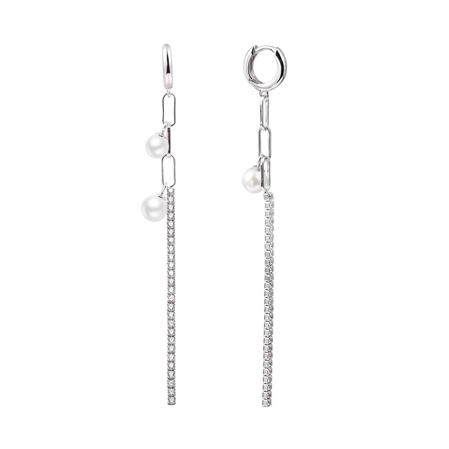 Серьги из серебра 925 пробы с фианитами и жемчугами