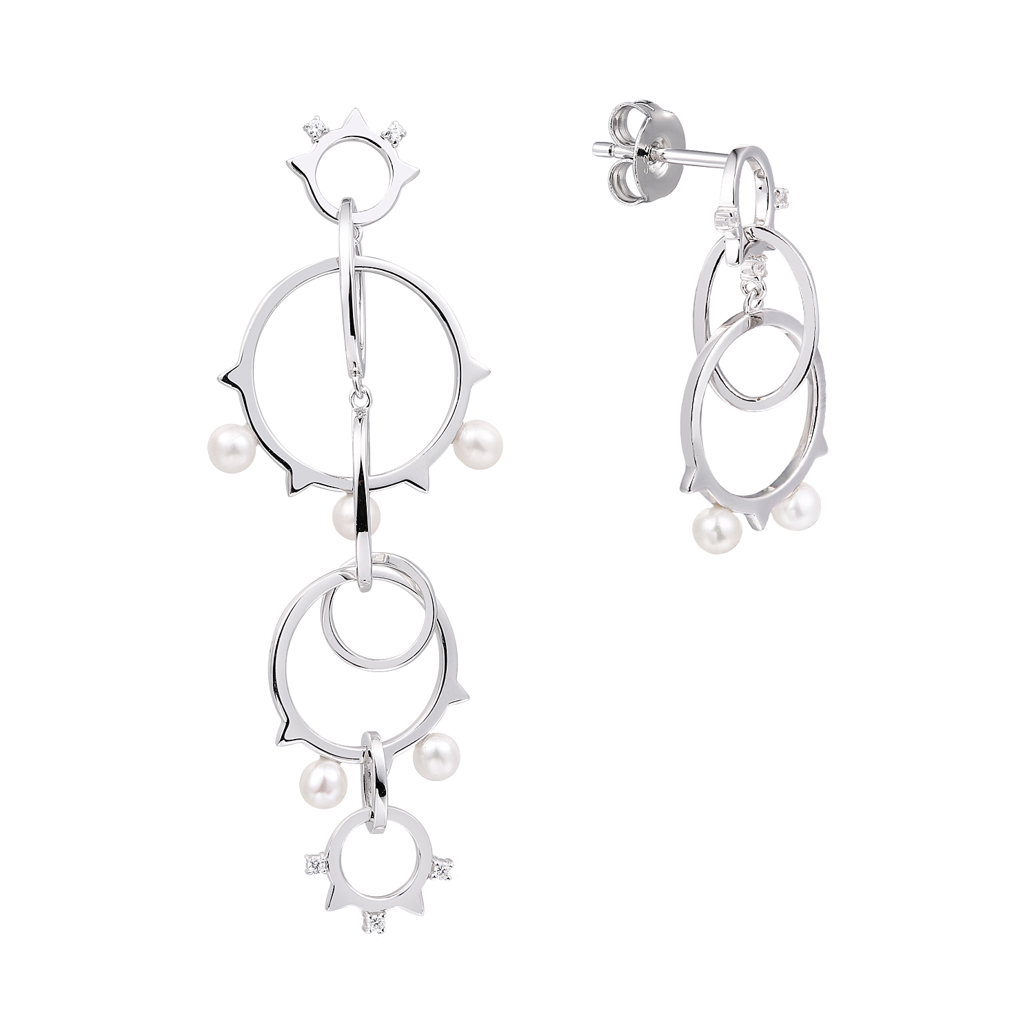 Серьги из серебра 925 пробы с фианитами и жемчугами