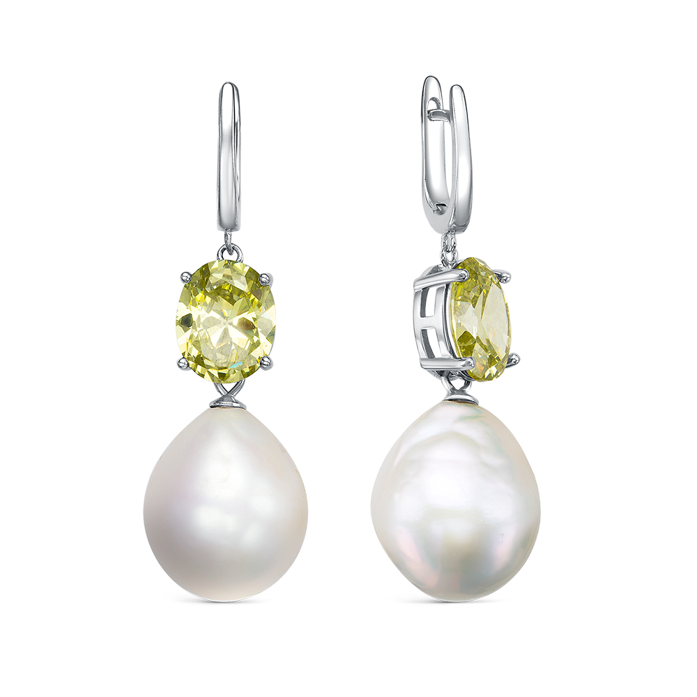 Серьги из серебра 925 пробы с фианитами и жемчугами