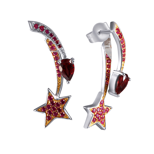 Серьги из серебра 925 пробы с гранатами и фианитами