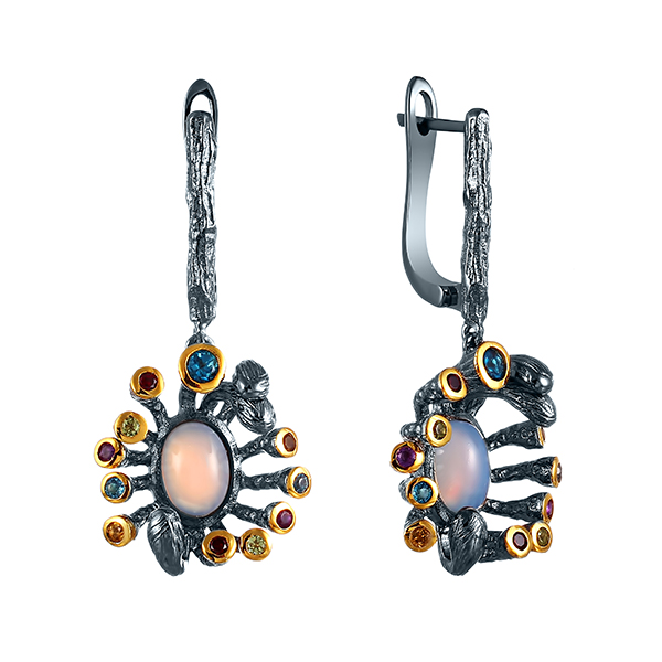 Серьги из серебра 925 пробы с халцедонами и цветными полудрагоценными камнями