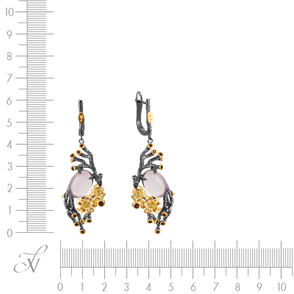 Серьги из серебра 925 пробы с кварцем, перидотами и гранатами