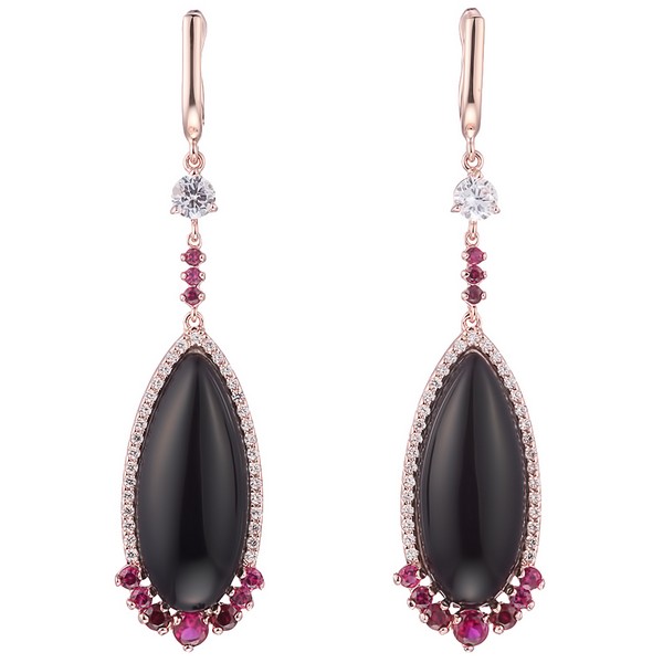 Серьги из серебра 925 пробы с ониксом и фианитами