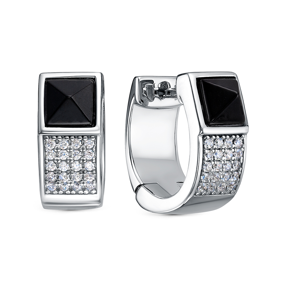Серьги из серебра 925 пробы с ониксом и фианитами