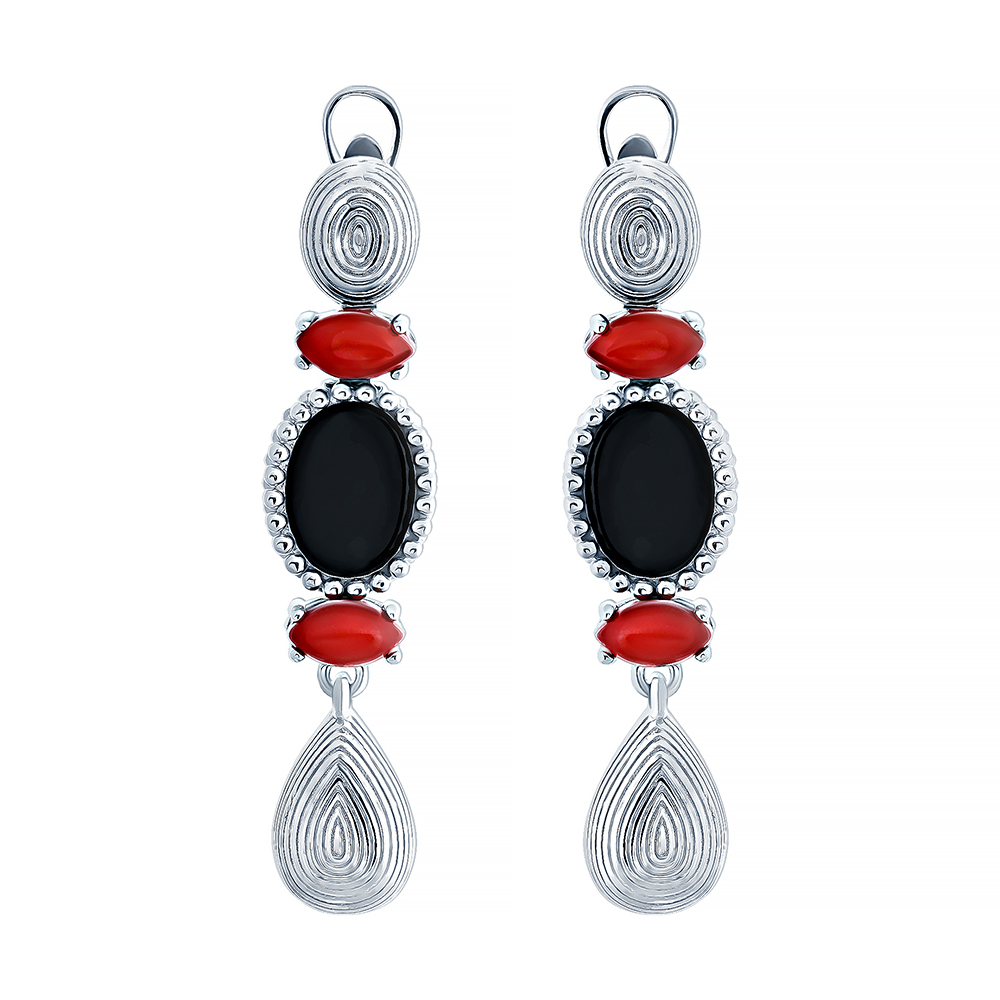 Серьги из серебра 925 пробы с ониксом и яшмой