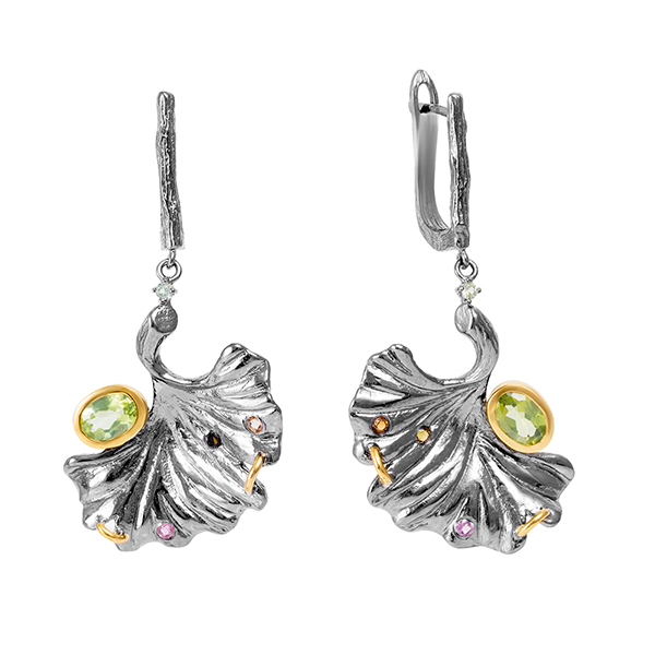 Серьги из серебра 925 пробы с перидотами и турмалинами