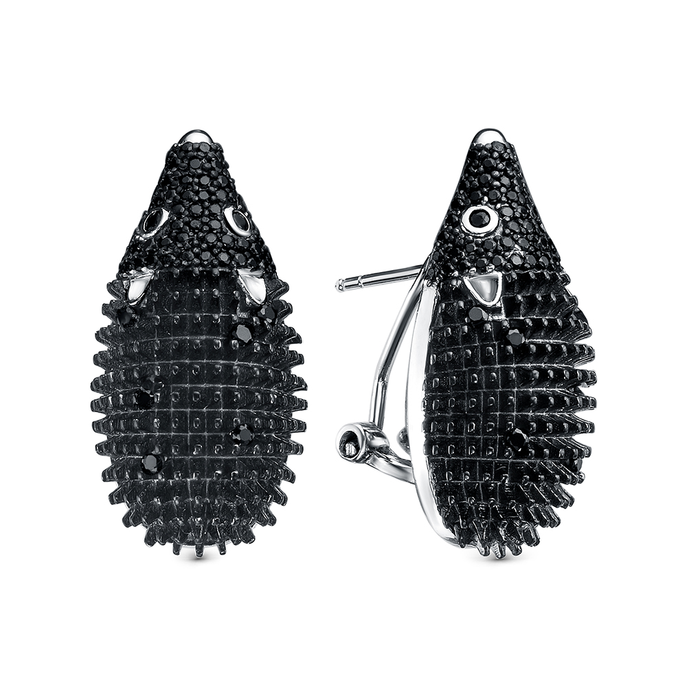 Серебряные серьги 925 пробы, камни - шпинель черный