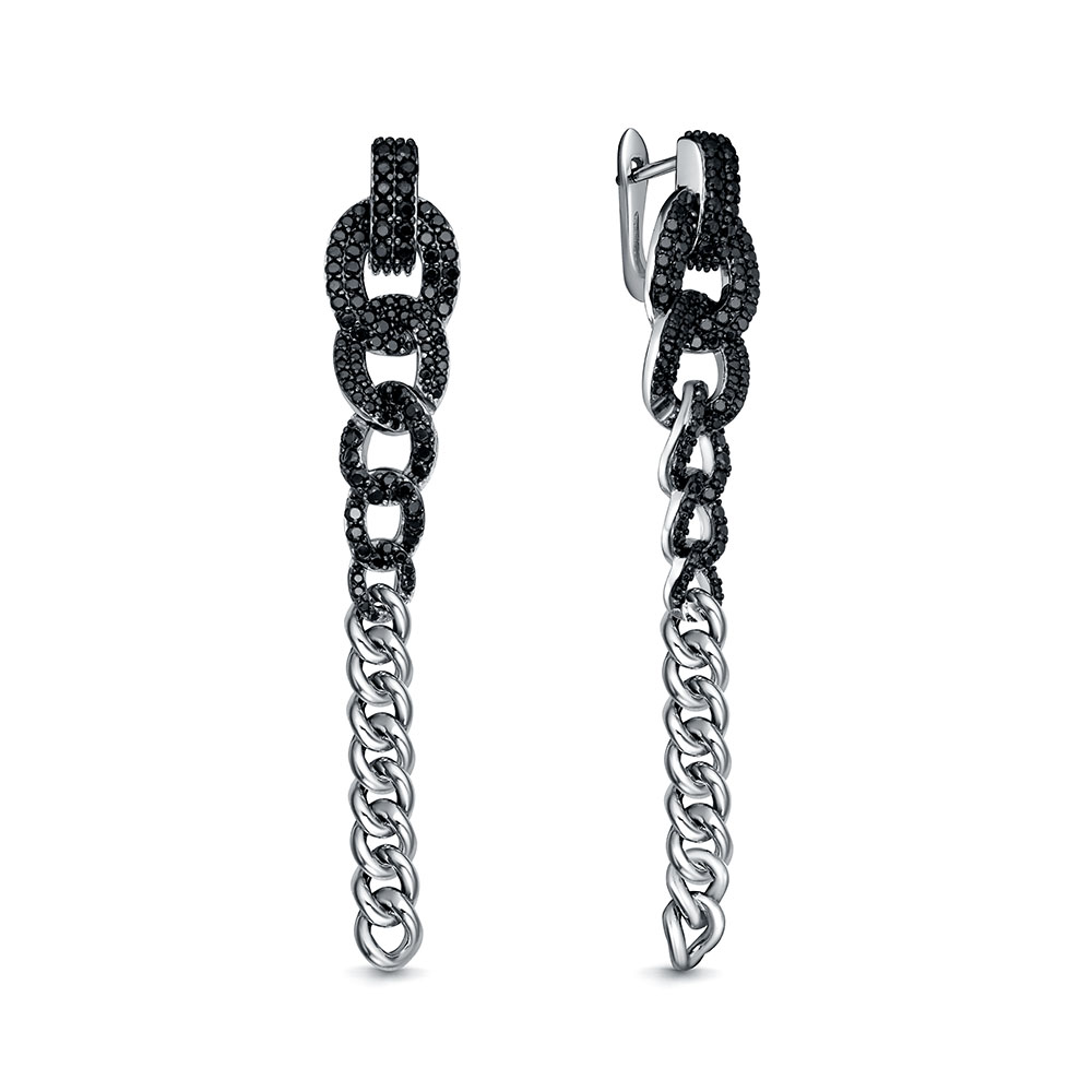 Серебряные серьги 925 пробы, камни - шпинель черный