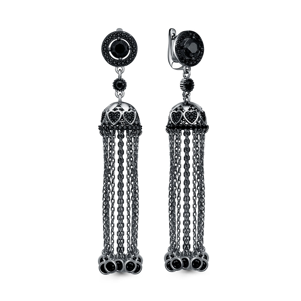 Серебряные серьги 925 пробы, камни - шпинель черный