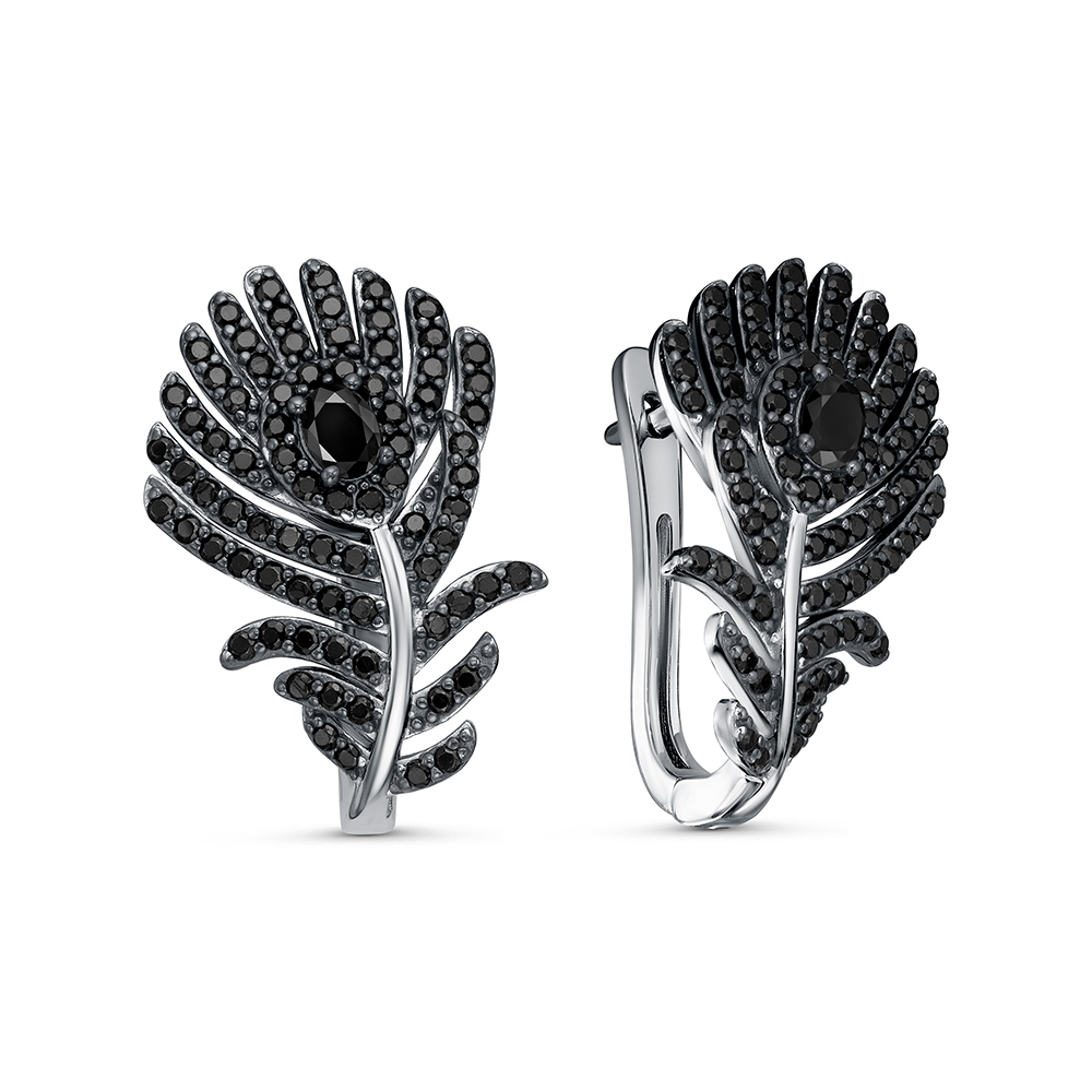 Серебряные серьги 925 пробы, камни - шпинель черный