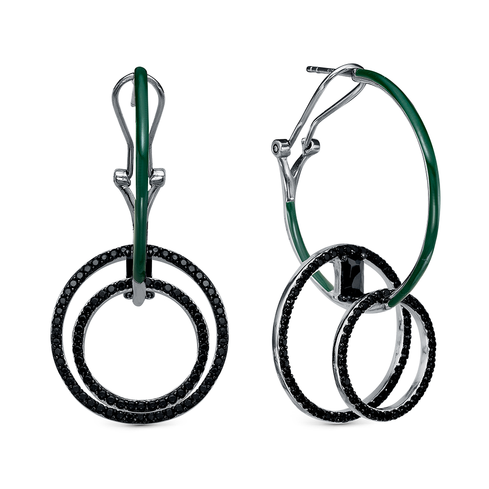 Серьги из серебра 925 пробы с шпинелью и эмалью