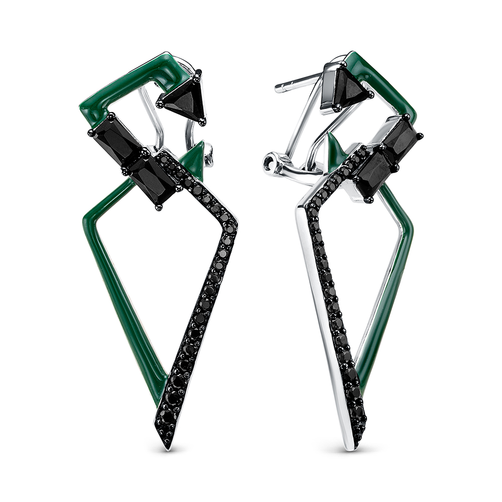 Серьги из серебра 925 пробы с шпинелью и эмалью