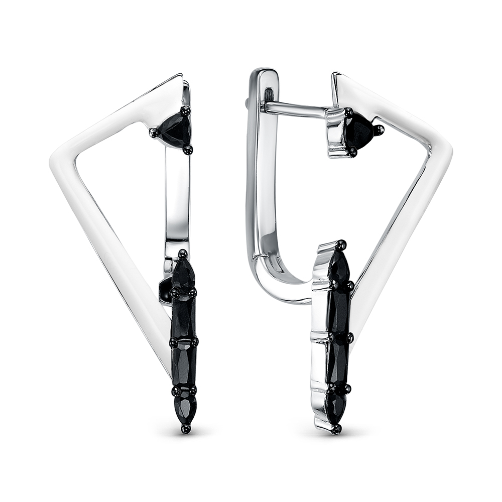 Серебряные серьги 925 пробы, камни - шпинель черный, эмаль