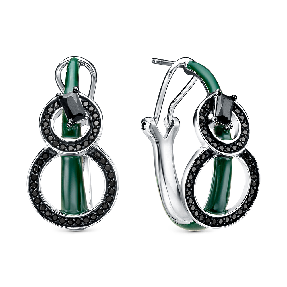 Серьги из серебра 925 пробы с шпинелью и эмалью
