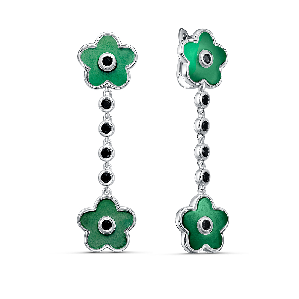 Серьги из серебра 925 пробы с шпинелью синтетической и агатом