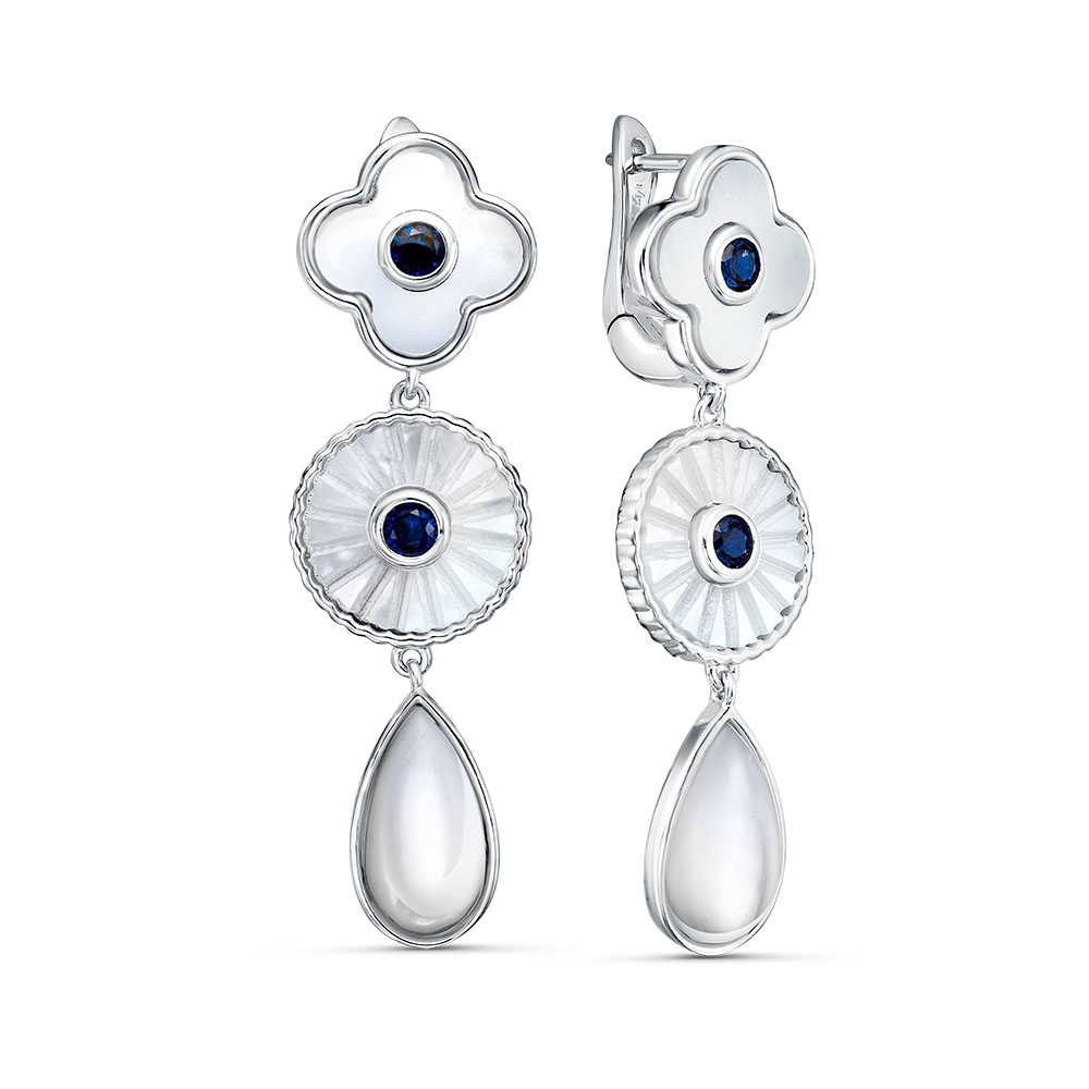 Серьги из серебра 925 пробы с шпинелью синтетической и перламутром