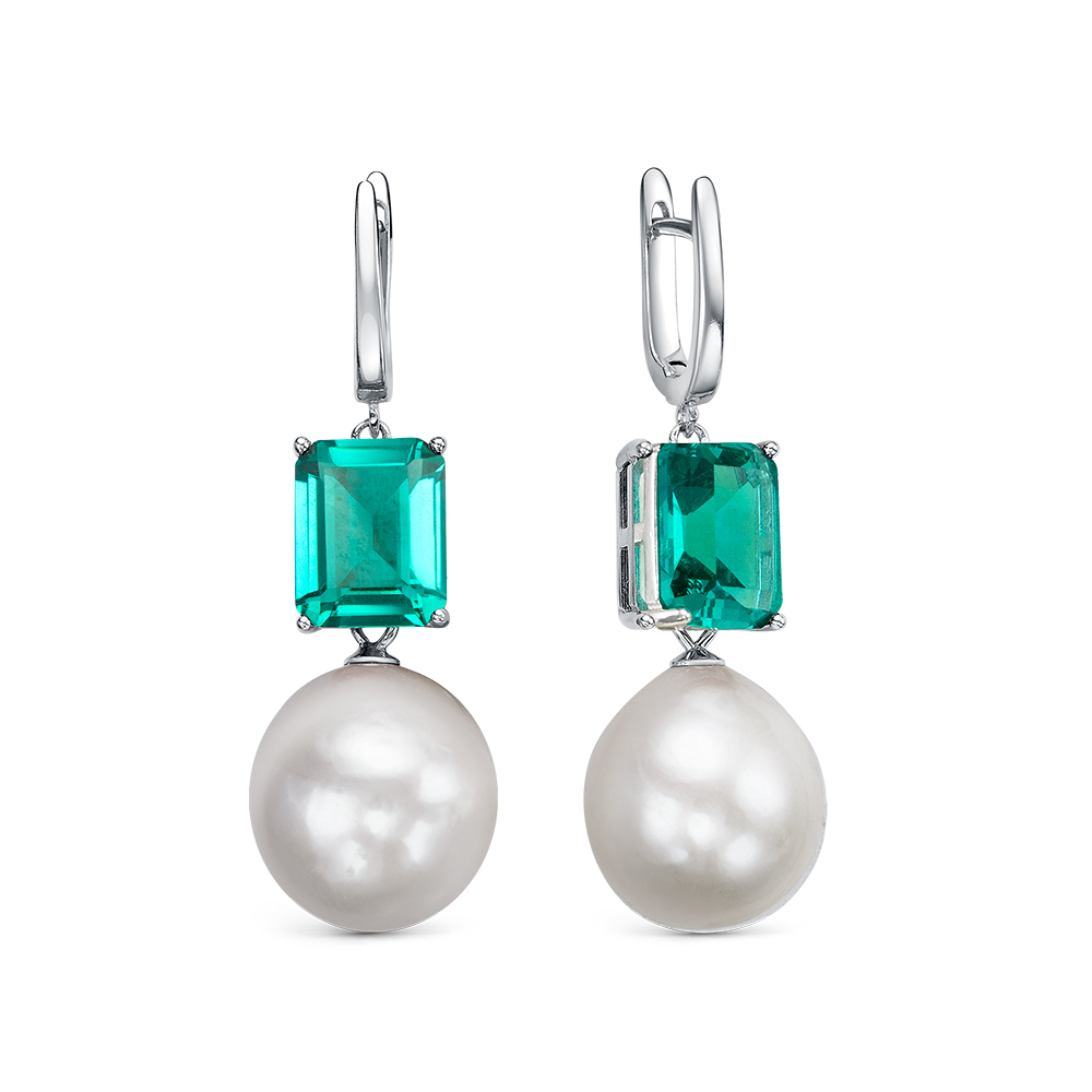 Серебряные серьги 925 пробы, камни - ювелирное стекло, жемчуг