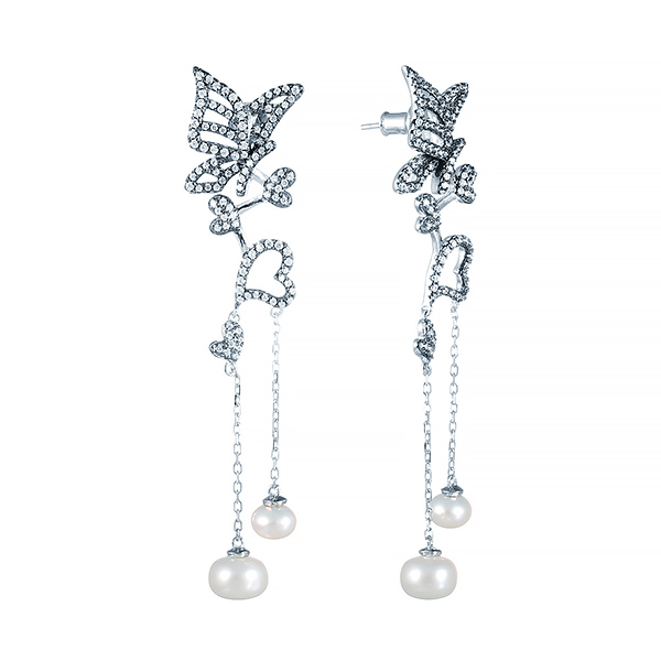 Серьги из серебра 925 пробы с жемчугами и фианитами