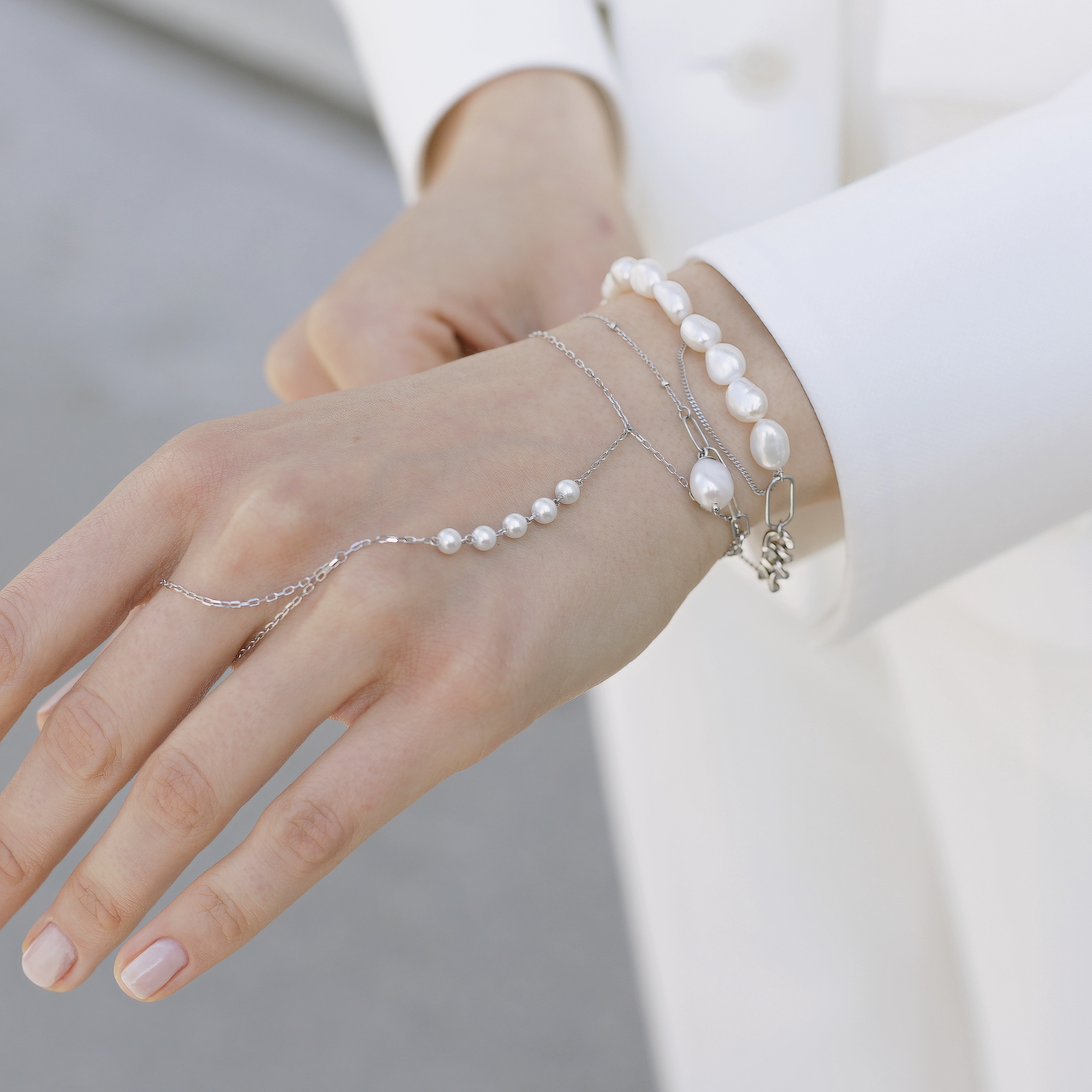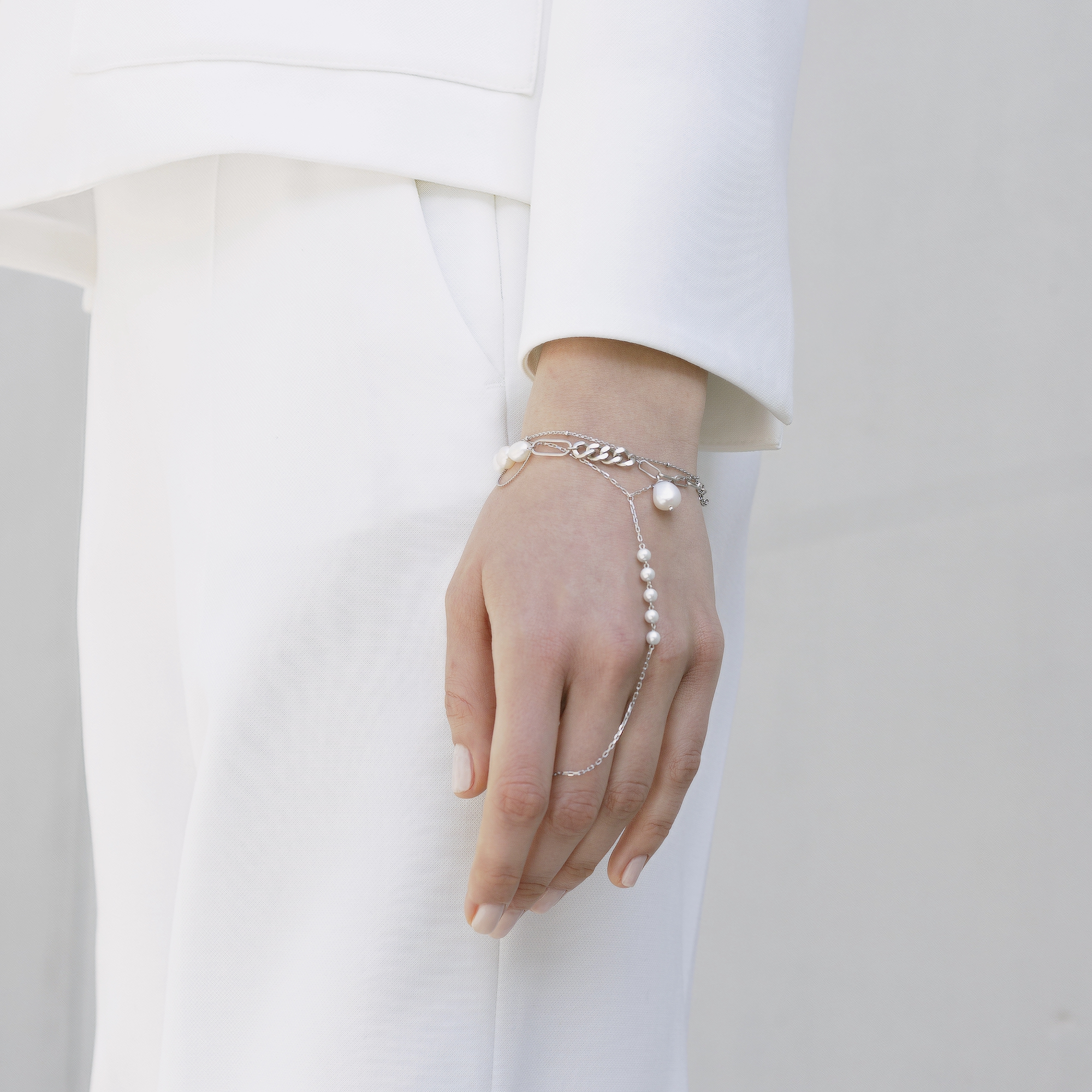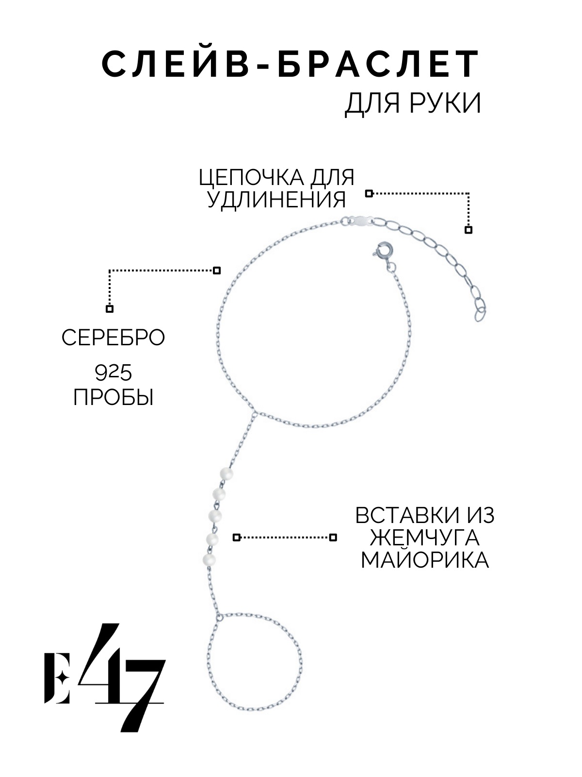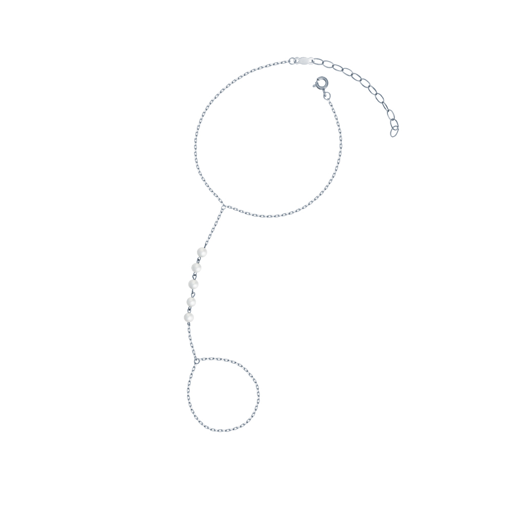 Слейв-браслет из серебра 925 пробы с жемчугом майорика