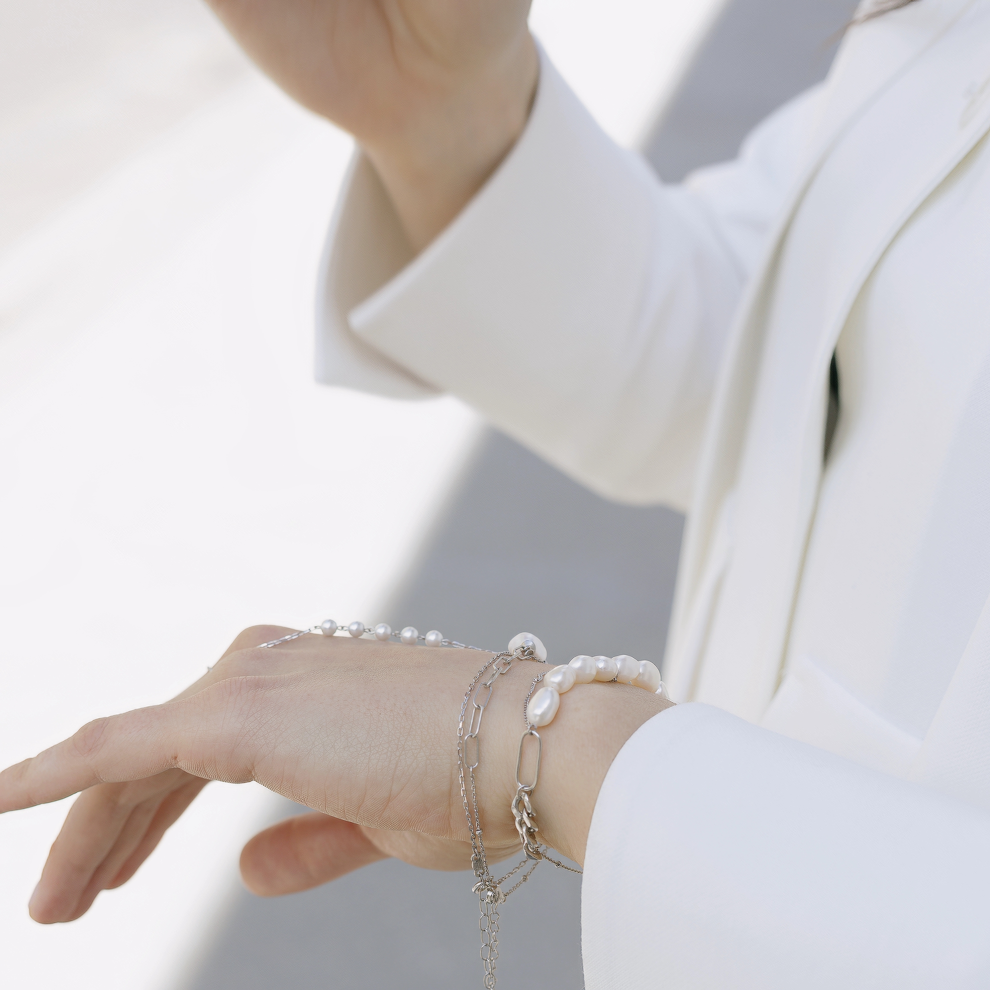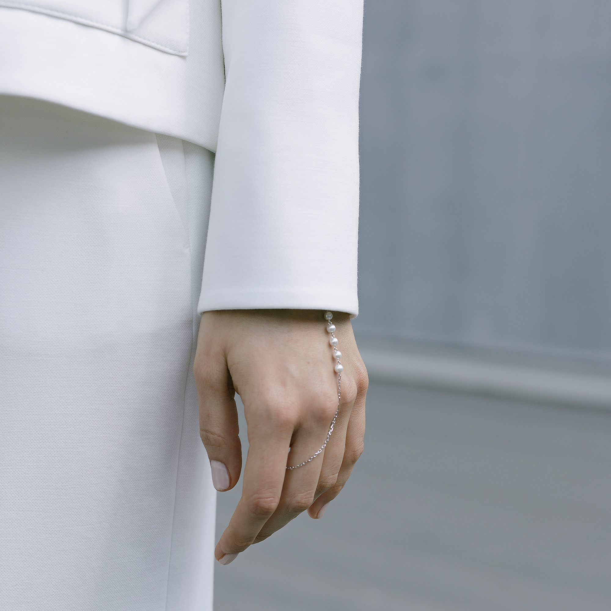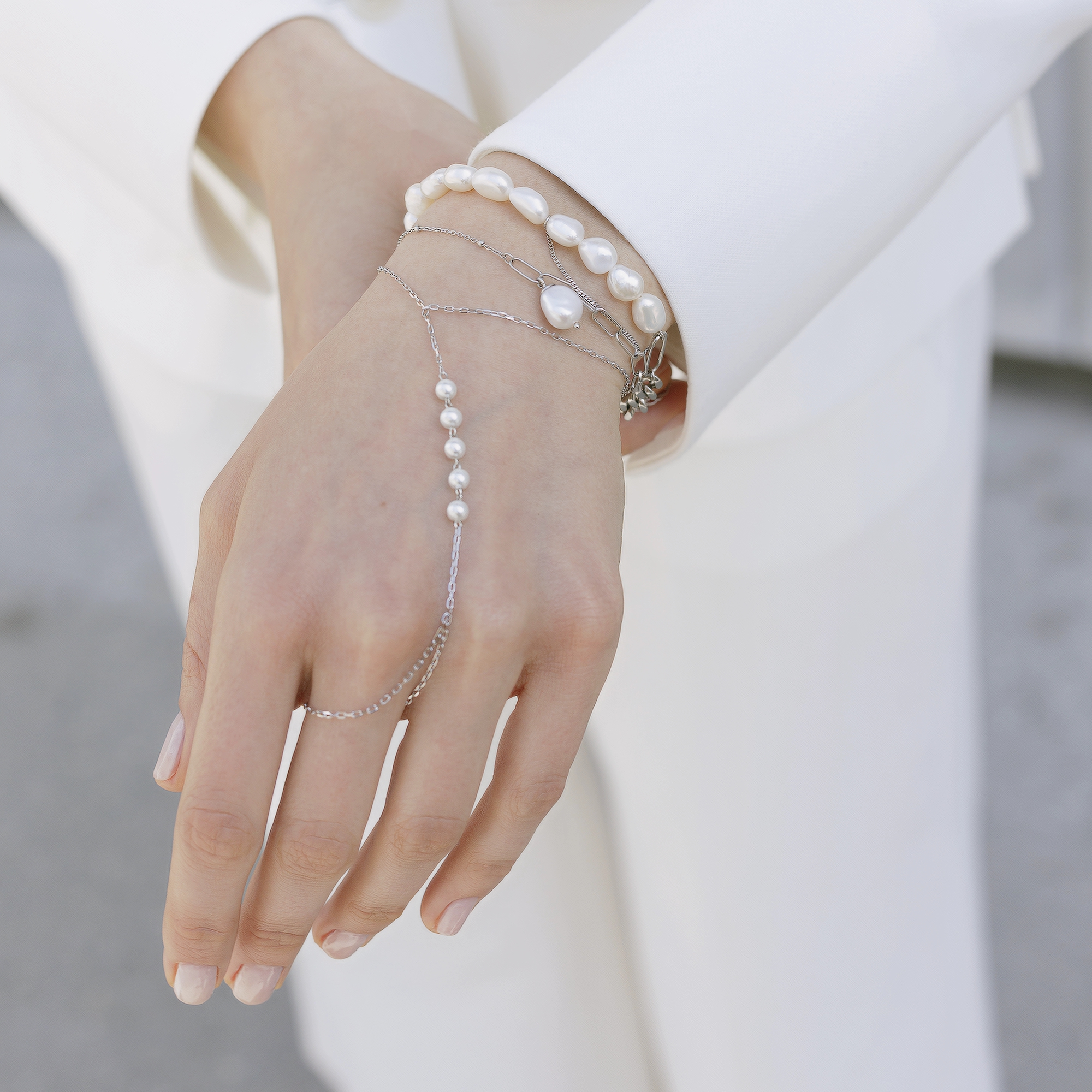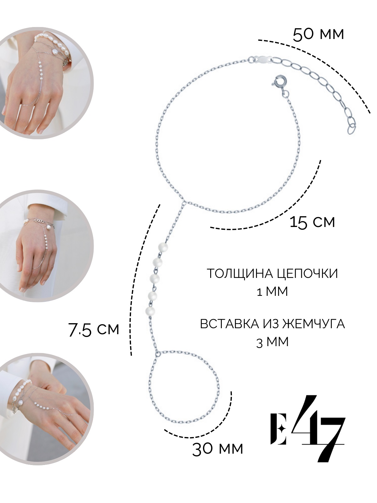 Слейв-браслет из серебра 925 пробы с жемчугом майорика
