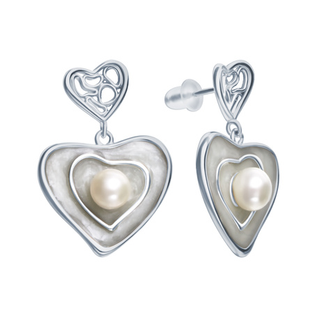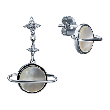 Серьги из серебра 925 пробы с фианитами и перламутром