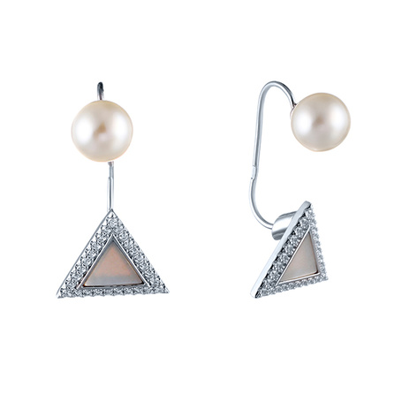 Серьги из серебра 925 пробы с фианитами, перламутром и жемчугом майорика