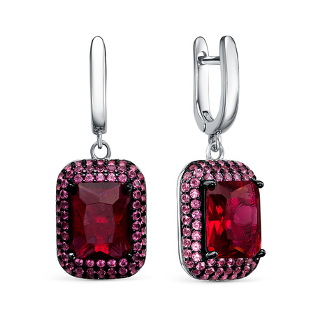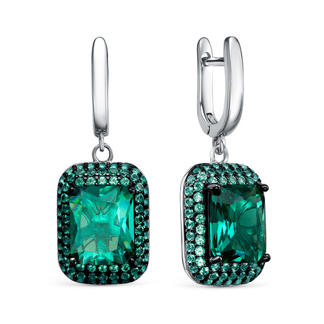 Серьги из серебра 925 пробы с ювелирным стеклом и фианитами