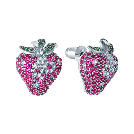 Серьги из серебра 925 пробы с ювелирным стеклом, эмалью и фианитами