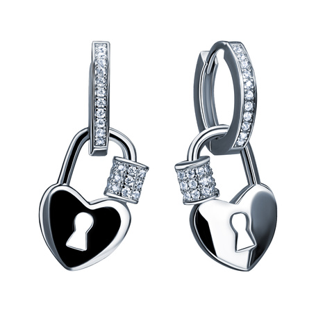 Серьги из серебра 925 пробы с фианитами и эмалью