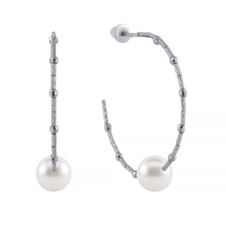 Серьги из серебра 925 пробы с фианитами и жемчугами