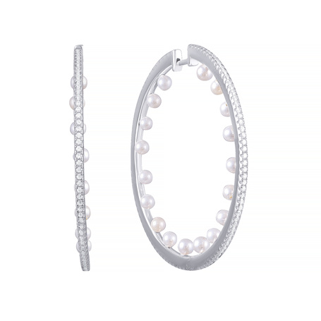 Серьги из серебра 925 пробы с фианитами и жемчугом майорика