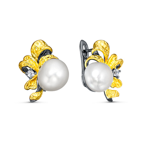 Серьги из серебра 925 пробы с перламутром, фианитами и эмалью Китай