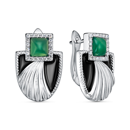 Серьги из серебра 925 пробы с агатом, фианитами и эмалью Китай