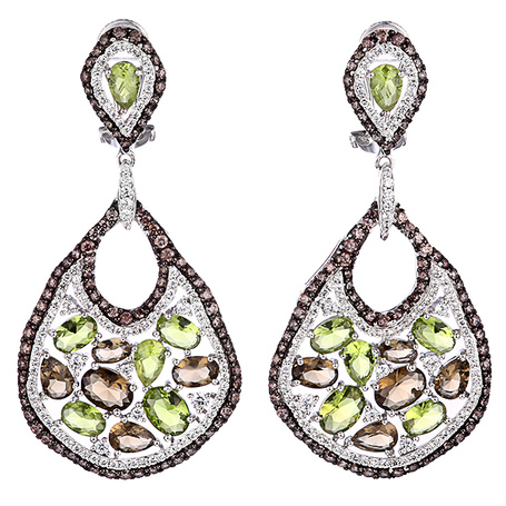 Серьги из серебра 925 пробы с перидотами синтетическими, раухтопазами синтетическими и фианитами
