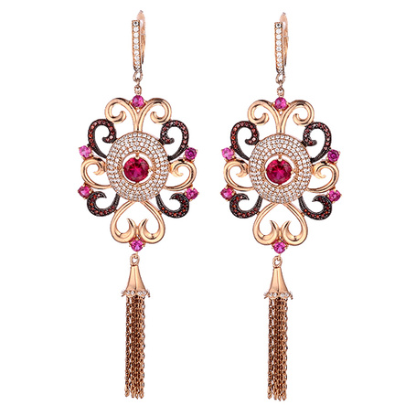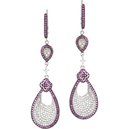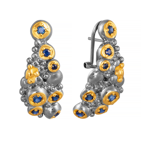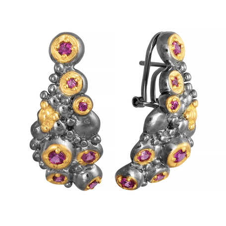 Серьги из серебра 925 пробы с рубинами, сапфирами и родолитами