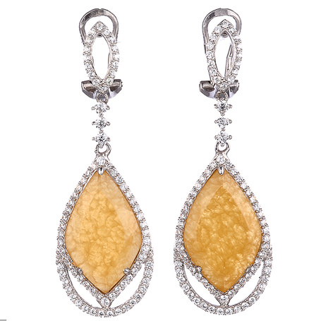 Серьги из серебра 925 пробы с кальцитами и фианитами