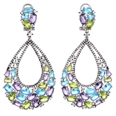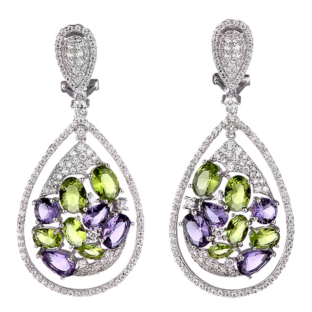 Серьги из серебра 925 пробы с перидотами синтетическими, топазами синтетическими, аметистами синтетическими и фианитами