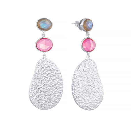 Серьги из серебра 925 пробы с лабрадоритами и кварцем синтетическим