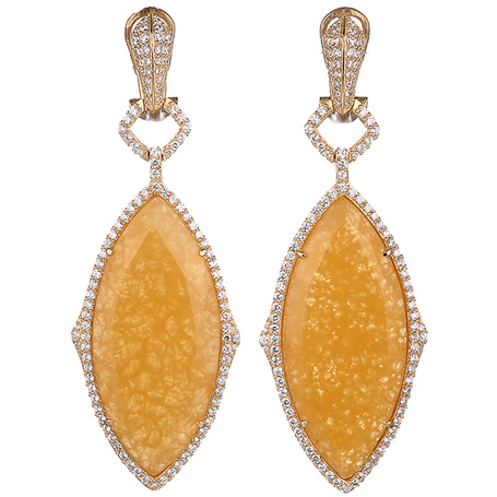 Серьги из серебра 925 пробы с халцедонами и кварцем синтетическим