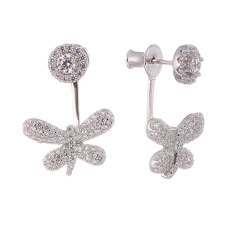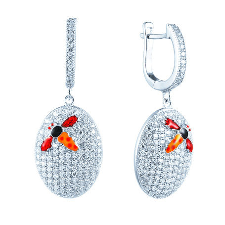 Серьги из серебра 925 пробы с фианитами и эмалью