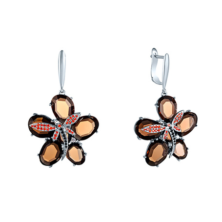 Серьги из серебра 925 пробы с раухтопазами и фианитами