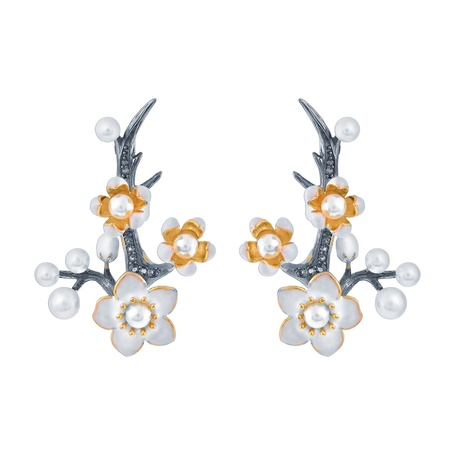Серьги из серебра 925 пробы с жемчугами, фианитами и эмалью