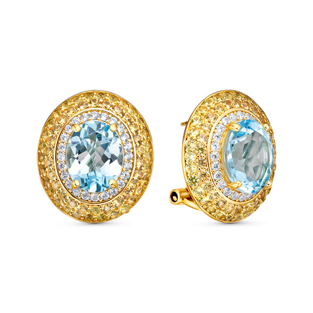 Серьги из серебра 925 пробы с топазами, сапфирами и цирконами